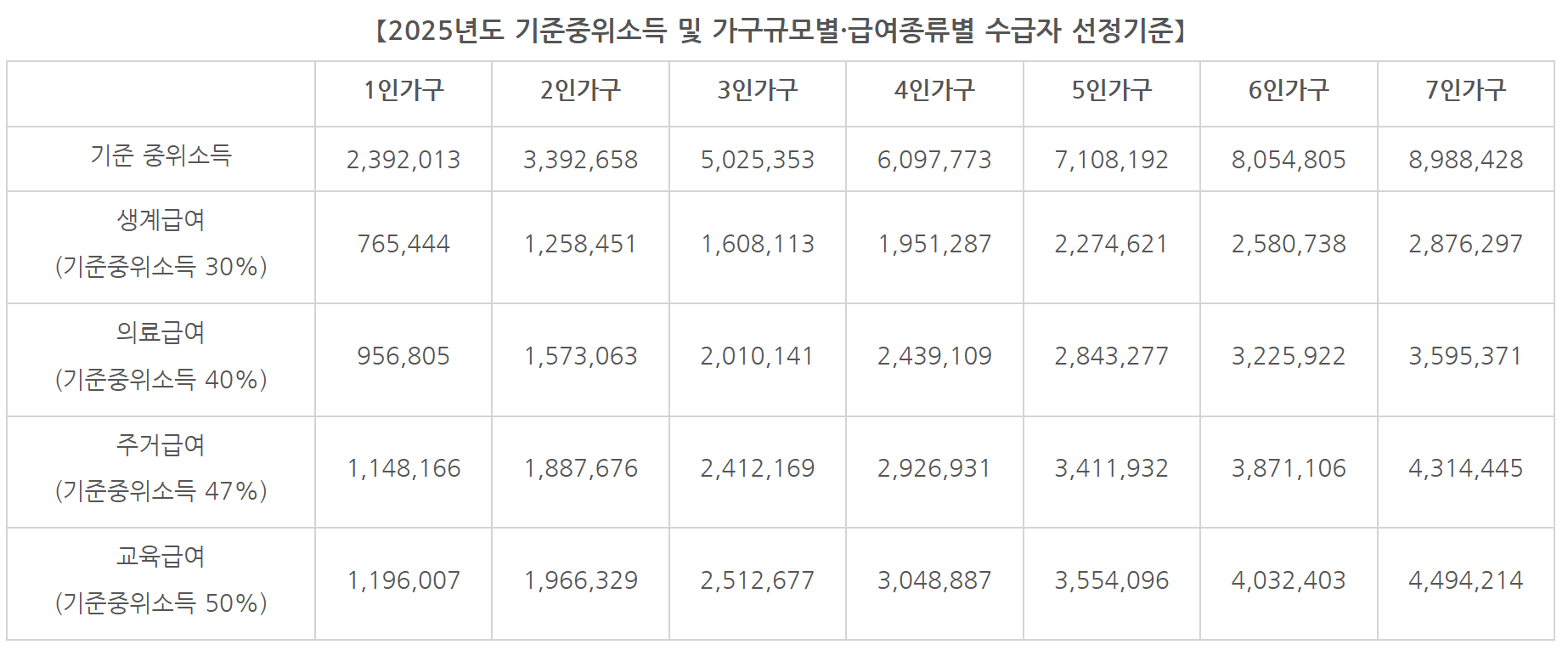 생계급여 : 생활비를 지원하여 기본적인 생계를 유지할 수 있도록 돕습니다.