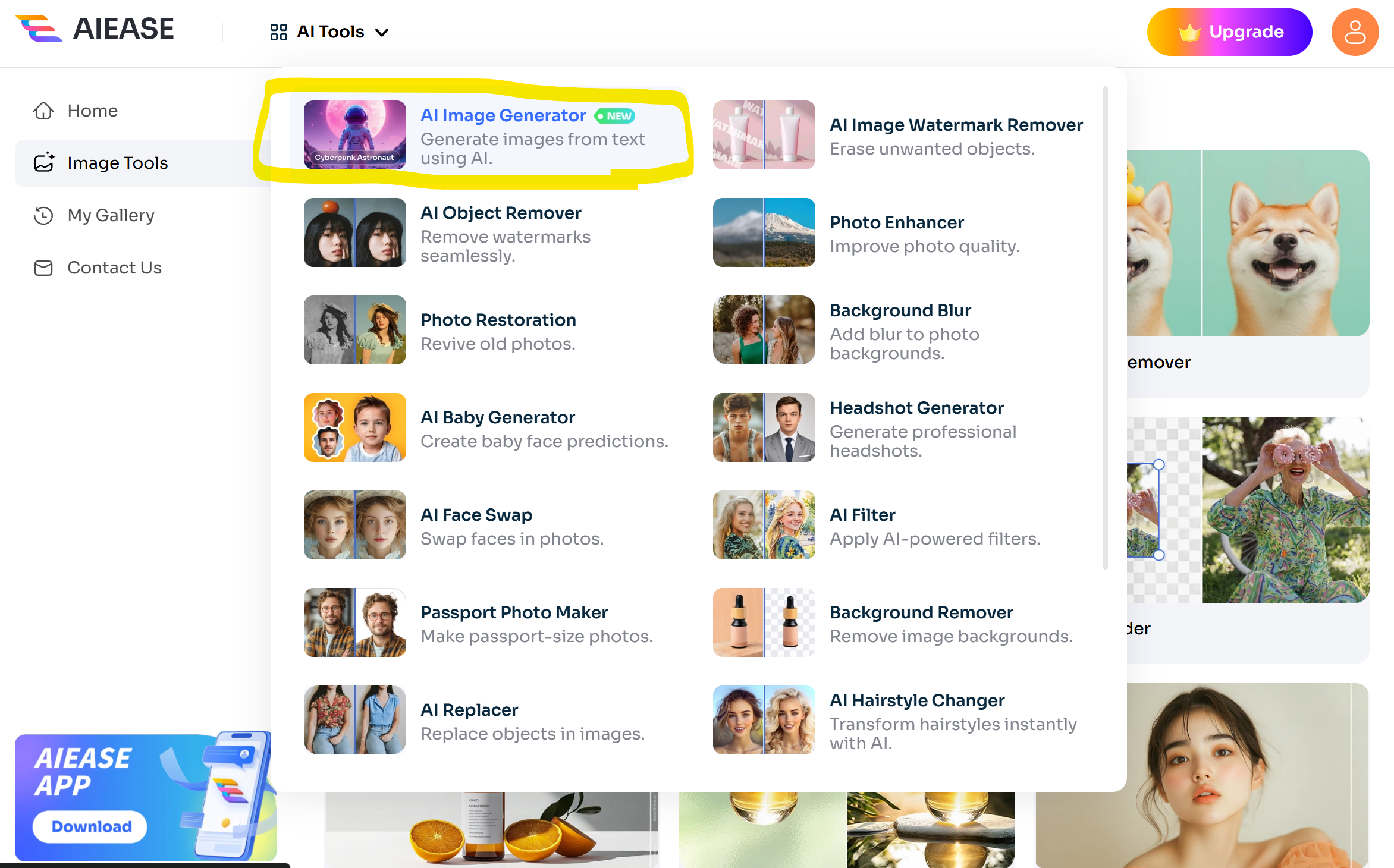 https://www.aiease.ai/ 여기에 접속하셔서 회원 가입을 한 후, ai 이미지를 생성할 수 있는데 al Tools 탭을 눌러보면 무료로 이미지 생성하기 버튼이 나옵니다.
