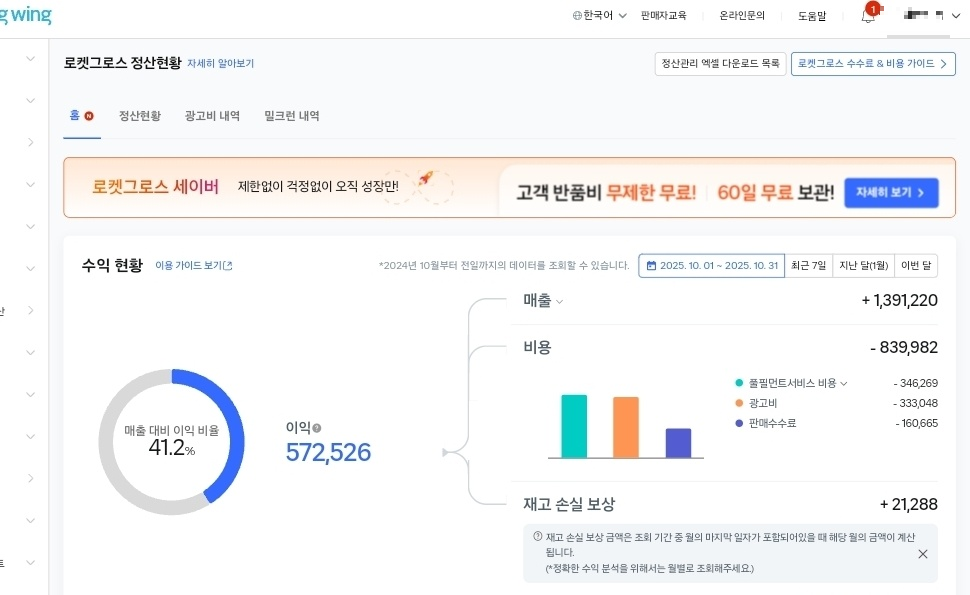 물론 수수료가 있긴한데, 해주는 것에 비하면 이정도면 괜찮다. (물건마다 수수료율 상이하고 쿠팡 판매자사이트 윙에서 확인이 가능하다.)